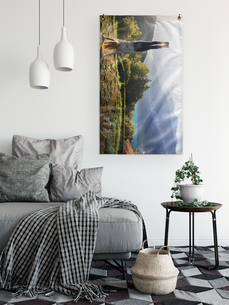 Dress up your space with a high quality wall flag. This 36”x60” wall flag is made of 100% polyester knit; equipped with grommets for an authentic look and feel. The flag is a one sided semitransparent print perfect for indoor applications.